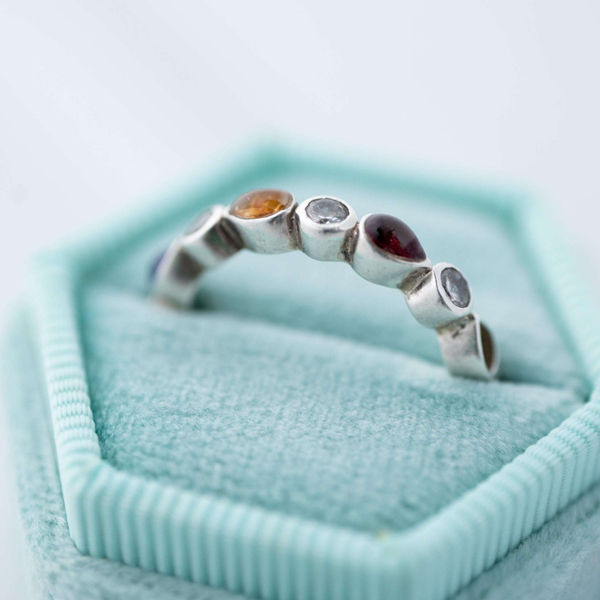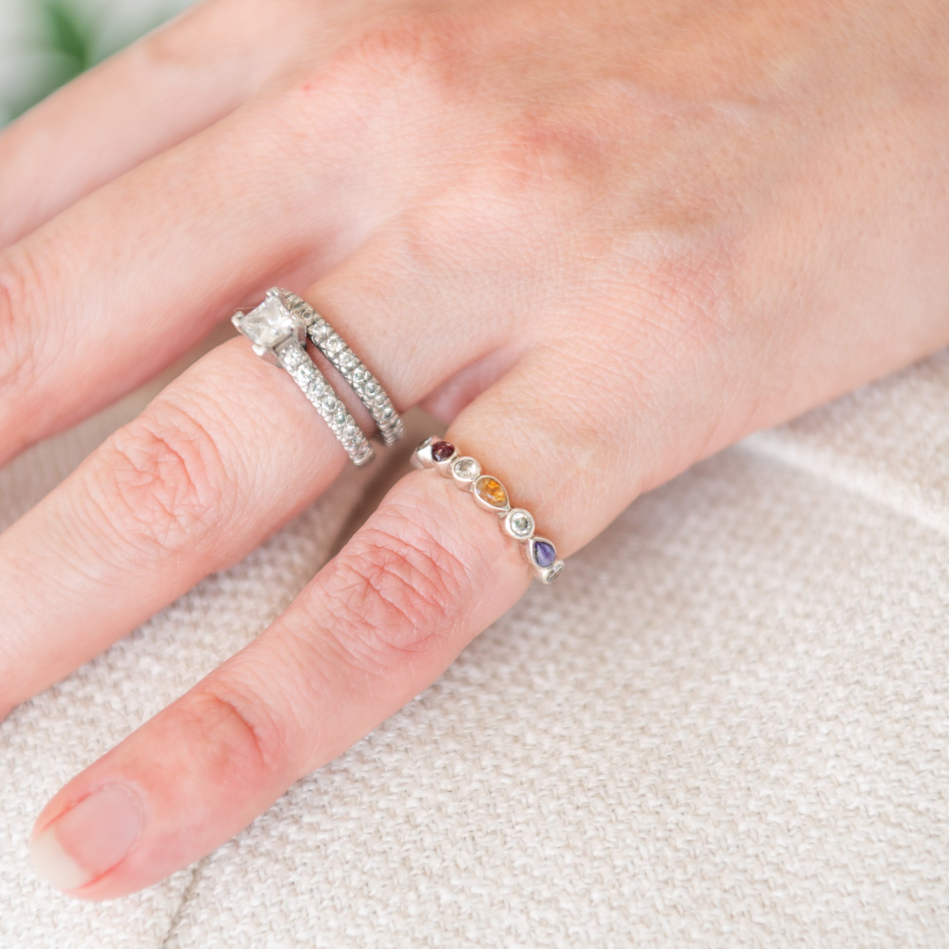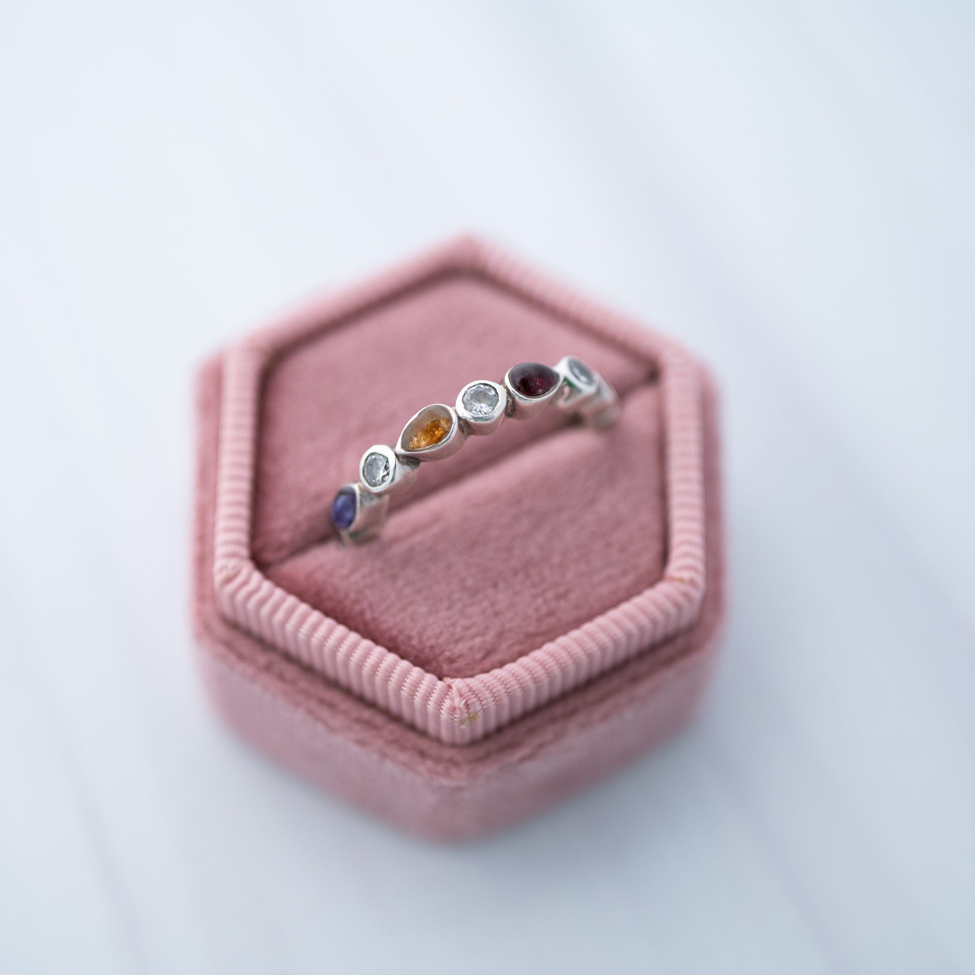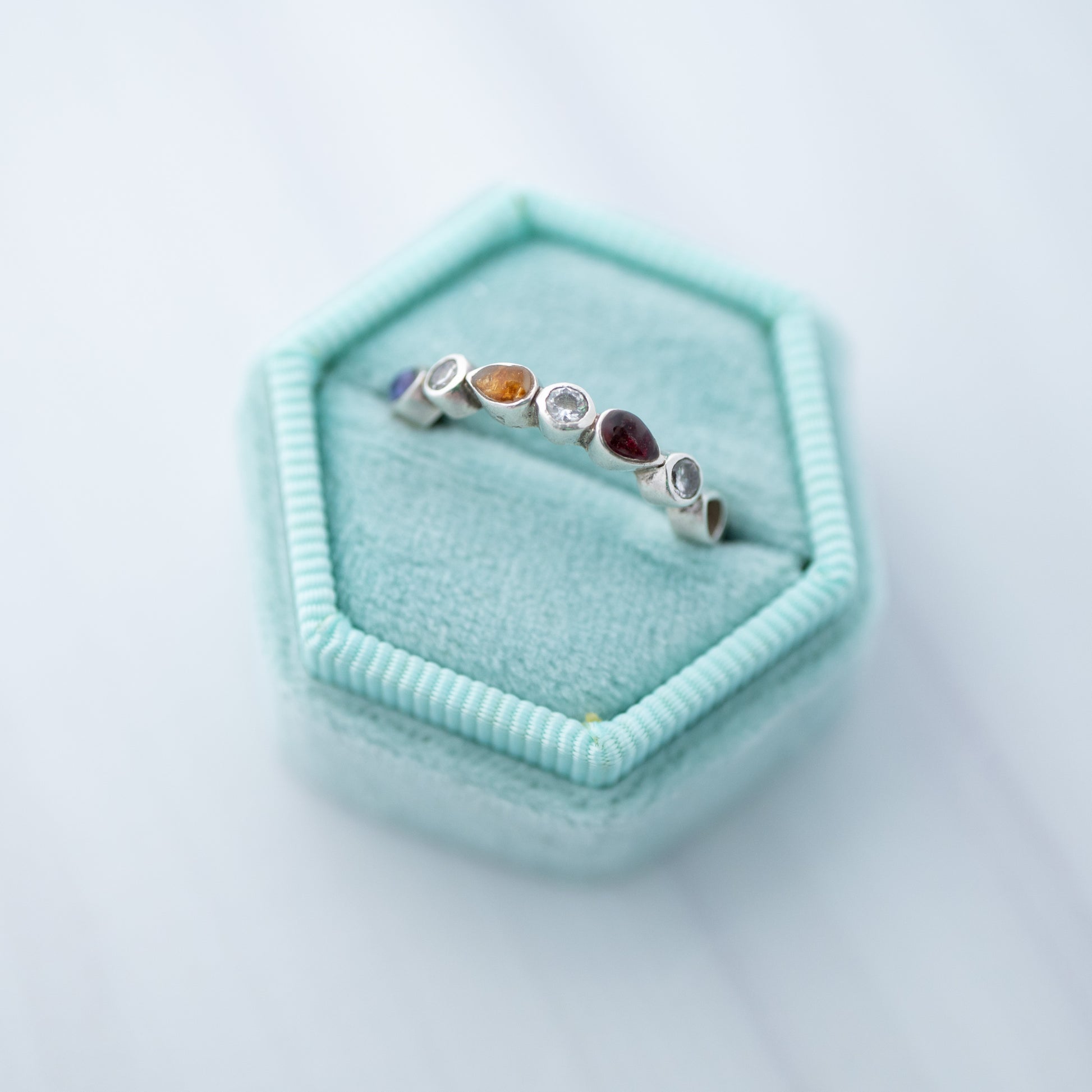 Delicate and full of charm, this solid .925 sterling silver ring features a petite pear-shaped bezel, perfect for holding a tiny yet meaningful inclusion such as ashes, preserved flowers, sand, or other personal materials. Accompanying round zircon gemstones add just the right touch of sparkle, creating a graceful balance between simplicity and sentiment.