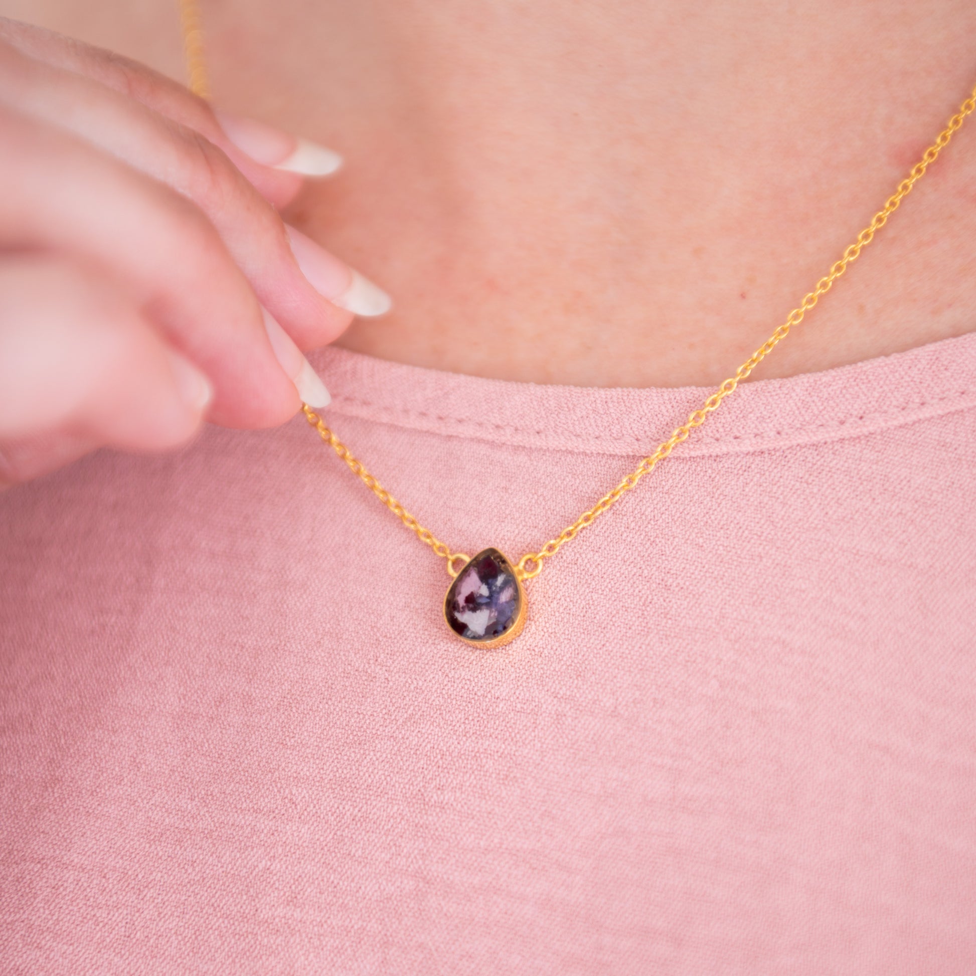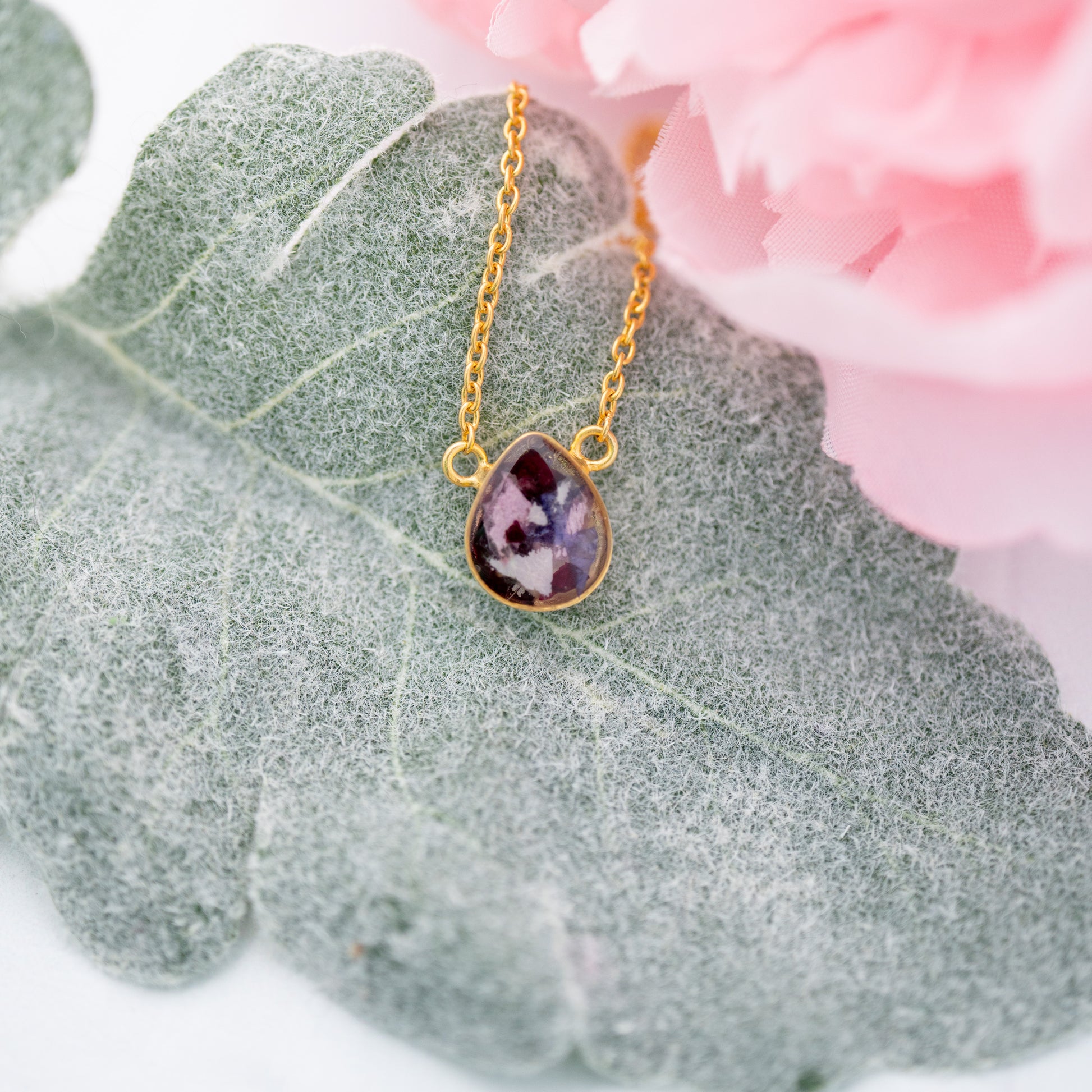 Simple, meaningful, and made to carry your story—this dainty sterling silver necklace features a petite bezel pendant, shown here in an pear shape. Designed to hold a custom inlay such as cremation ashes, dried flowers, sand, or other personal materials, it’s a beautiful way to keep a special moment or memory close to your heart. While the pear bezel is pictured, this necklace is available in five additional shapes, allowing you to choose the one that best reflects your style or the sentiment behind your piece.